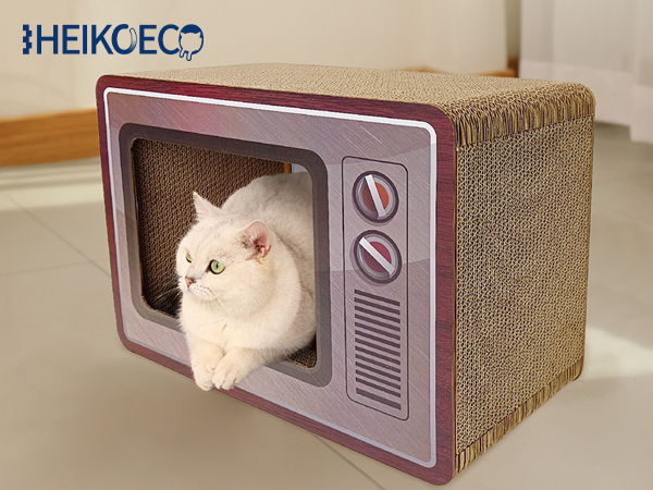 Dieses Kratzbrett in Form eines Fernsehers dient als stylisches Katzenhaus, in dem Ihre Katze innen und außen spielen und entspannen kann. Gleichzeitig ist es ein dekoratives Highlight für Ihr Zuhause.